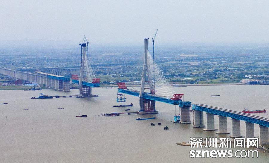 2019年5月6日,由中鐵大橋局承建的滬通長江大橋28號墩,完成了第13輪大節(jié)段鋼梁雙懸臂架設(shè)的吊裝作業(yè),至此,28號主墩鋼梁架設(shè)長度達(dá)到826米,距離南通側(cè)27號輔助墩墩頂鋼梁對接只有一“吊”之遙,計(jì)劃在5月底可實(shí)現(xiàn)主航道橋首個(gè)鋼梁合龍段的合龍節(jié)點(diǎn)目標(biāo)。