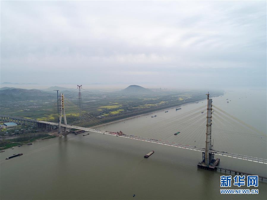 4月2日拍攝的合龍后的池州長江公路大橋(無人機(jī)拍攝)。