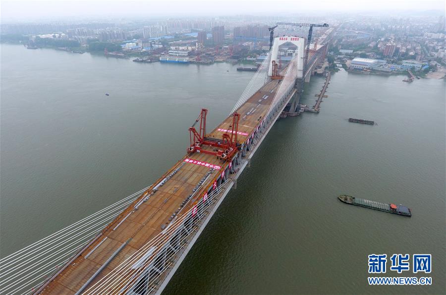 這是合龍后的商合杭鐵路蕪湖長江公鐵大橋(4月26日無人機拍攝)。