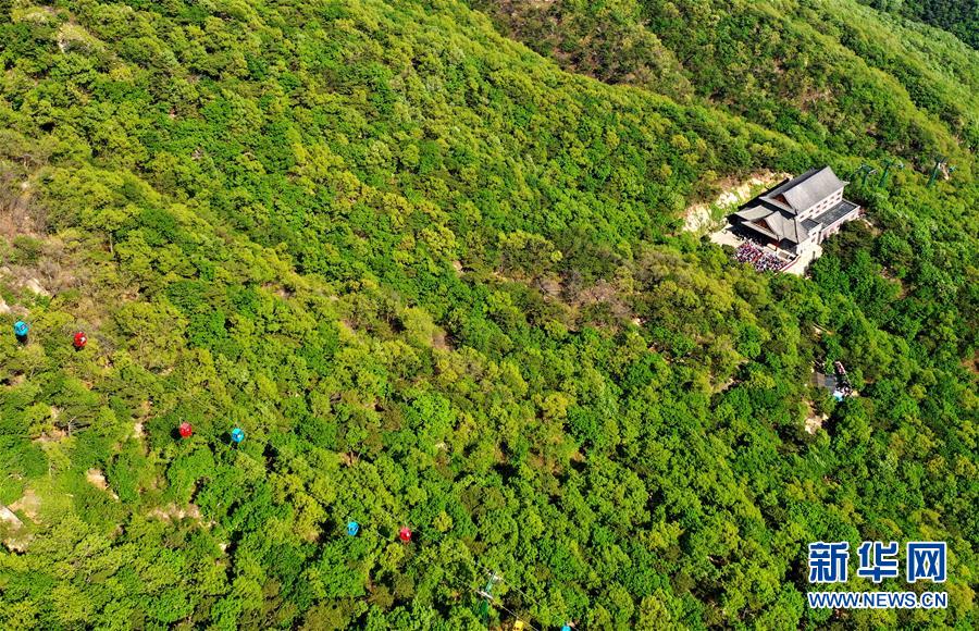 這是5月2日拍攝的盤山風(fēng)景名勝區(qū)正門景觀(無人機拍攝)。新華社記者 岳月偉 攝