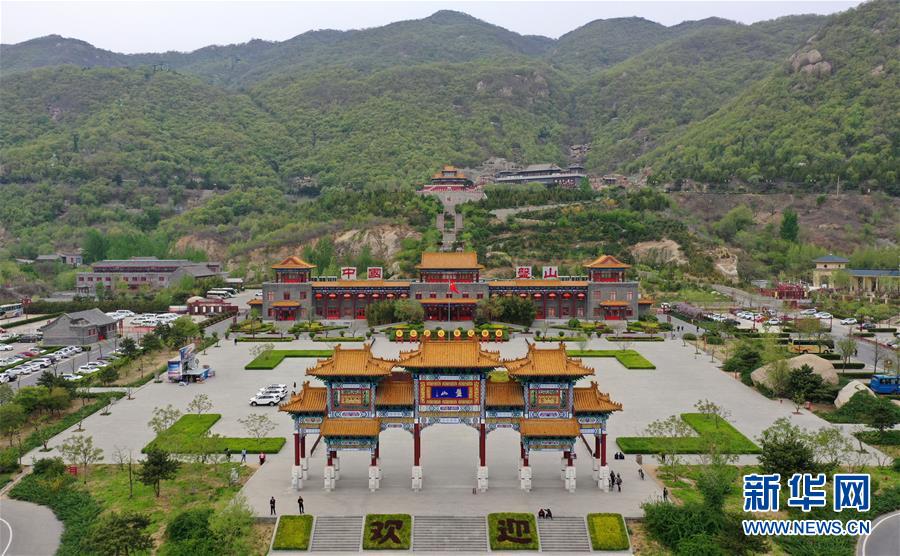 這是4月19日拍攝的盤山風(fēng)景名勝區(qū)正門景觀(無人機拍攝)。新華社記者 李然 攝