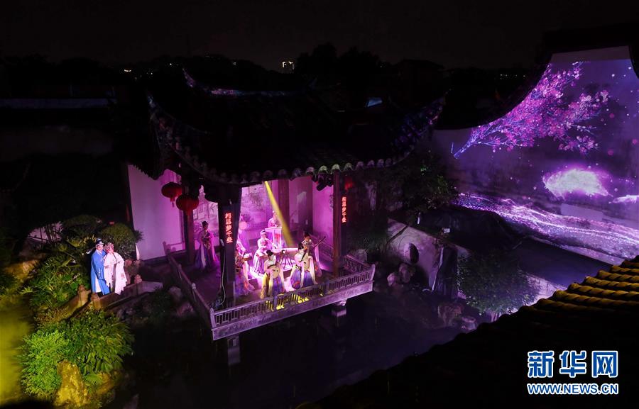 5月5日,演員在福州三坊七巷的水榭戲臺表演傳統文化演出。 福州三坊七巷為國內現存規(guī)模較大、保護較為完整的歷史文化名街區(qū),是中國十大歷史文化名街之一。位于三坊七巷內的水榭戲臺經常舉辦傳統文化演出吸引游客慕名前來觀賞。 新華社記者 林善傳 攝