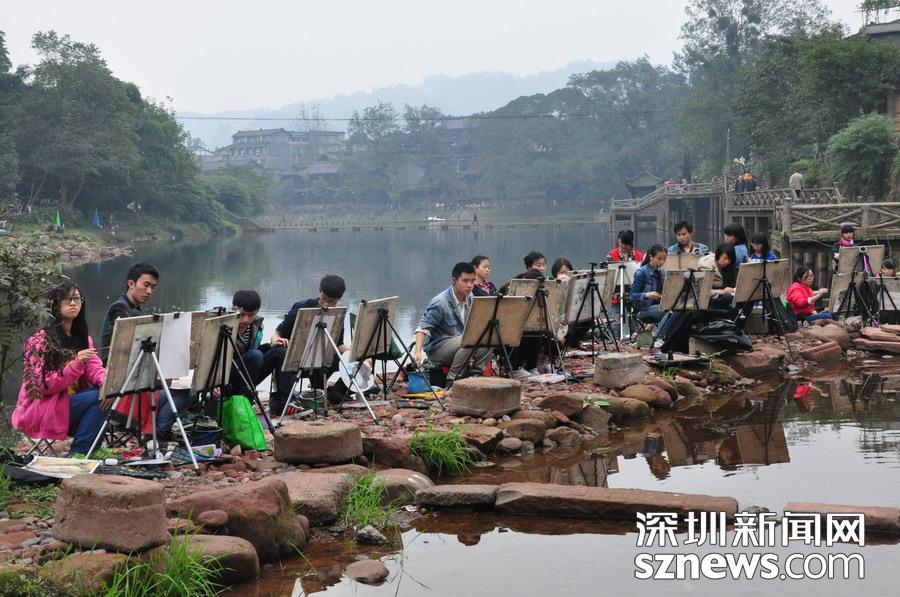 古鎮(zhèn)吸引很多寫(xiě)生的學(xué)生 李 仁奇 攝