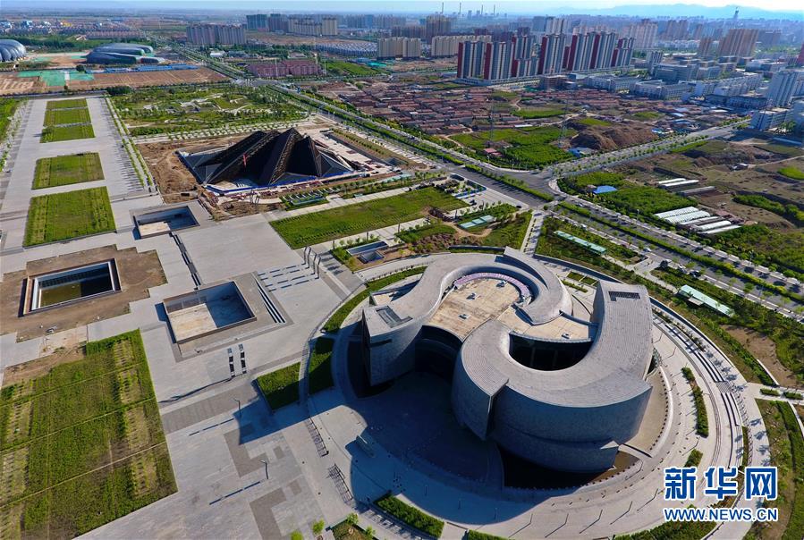 這是2017年5月17日無人機拍攝的大同市博物館(前)和美術館及周邊景色。新華社記者 曹陽 攝