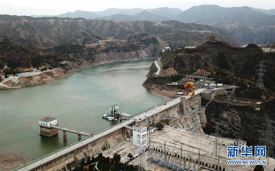 這是10月24日無人機拍攝的劉家峽水庫庫區(qū)和水庫大壩。 新華社記者 陳斌 攝