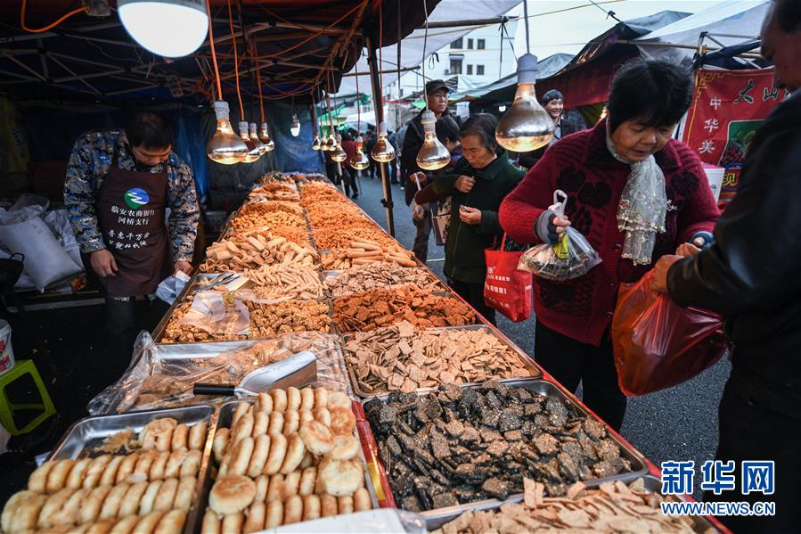 11月19日,人們?cè)趶R會(huì)現(xiàn)場購買當(dāng)?shù)孛朗场?新華社記者 徐昱 攝
