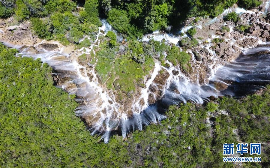 這是九寨溝景區(qū)的諾日朗瀑布景點(diǎn)(6月5日無(wú)人機(jī)拍攝)。 新華社記者薛玉斌攝