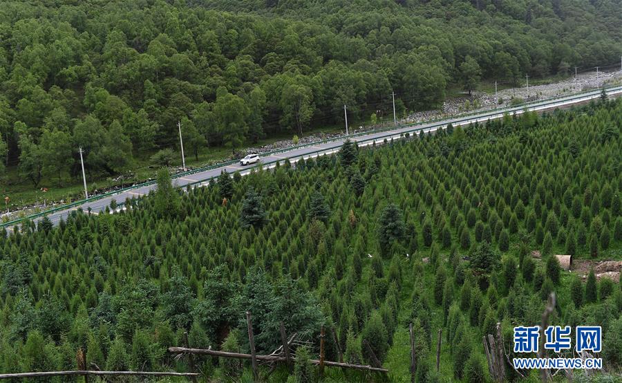 6月11日,一輛汽車(chē)在青海省扎隆溝至碾伯鎮(zhèn)公路上行駛。新華社記者 張宏祥 攝
