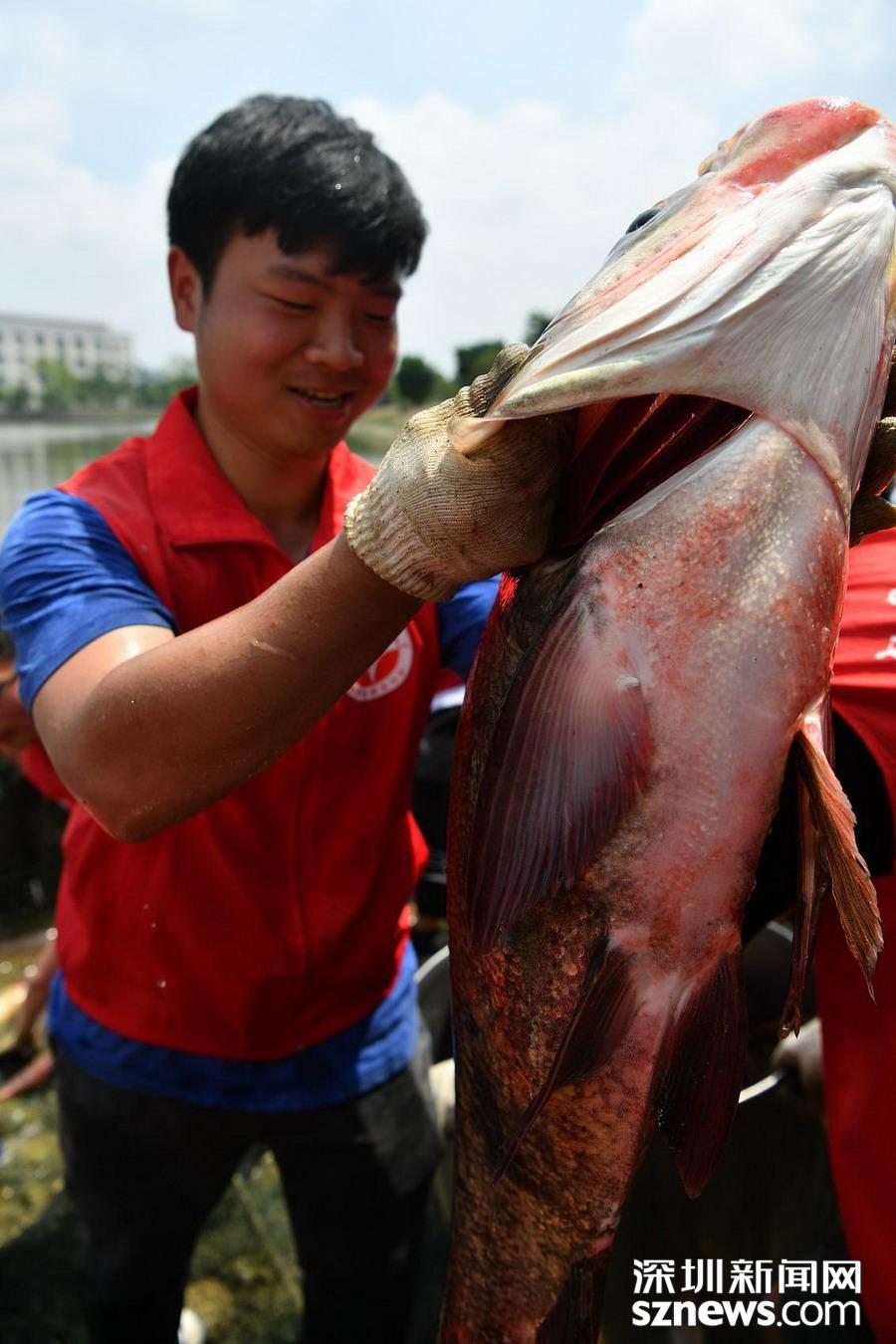 大學生集體校園捕魚最大“魚王”重達40斤