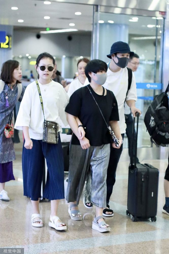 2019年8月15日,北京,小沈陽(yáng)和妻子沈春陽(yáng)帶女兒沈佳潤(rùn)現(xiàn)身機(jī)場(chǎng),一家三口罕見(jiàn)同框。小沈陽(yáng)承包行李甘當(dāng)“苦力”,沈春陽(yáng)和女兒全程挽手親昵似閨蜜,兩人同穿闊腿褲和鞋子,畫(huà)面溫馨有愛(ài)。