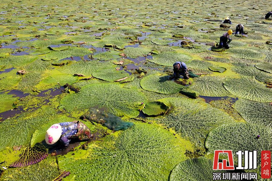 罕見(jiàn)的壯觀場(chǎng)面!萬(wàn)余畝芡實(shí)迎來(lái)收獲季