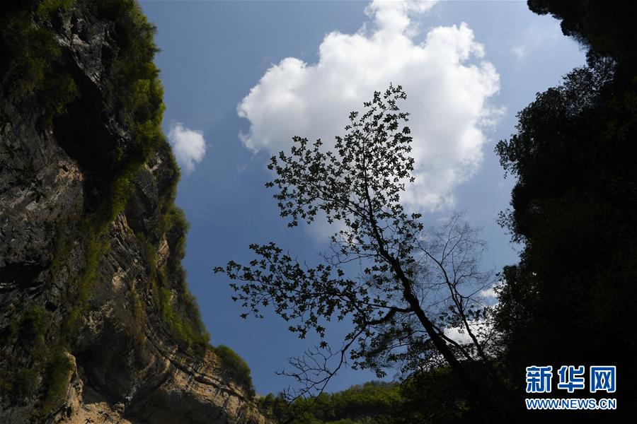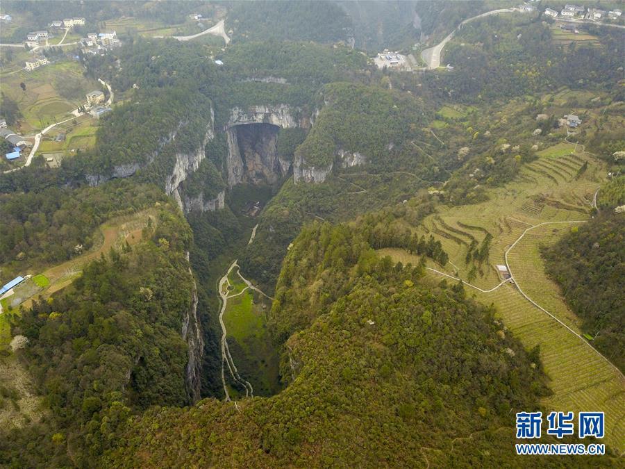 4月22日無(wú)人機(jī)拍攝的地洞河天坑。 新華社記者 張博文 攝
