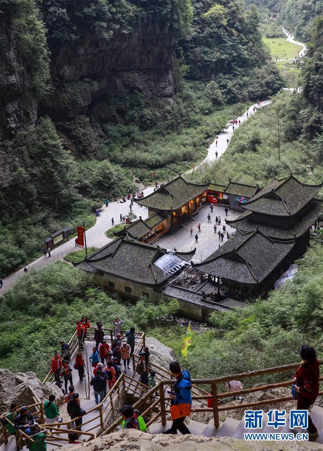 游客在天生三橋景區(qū)游覽(3月27日攝)。 隨著天氣轉(zhuǎn)暖,重慶武隆天生三橋景區(qū)風(fēng)景如畫,氣勢(shì)磅礴的天生石橋和綠意盎然的山林相映成趣,吸引眾多游客前來(lái)踏春賞景。 新華社記者劉潺攝
