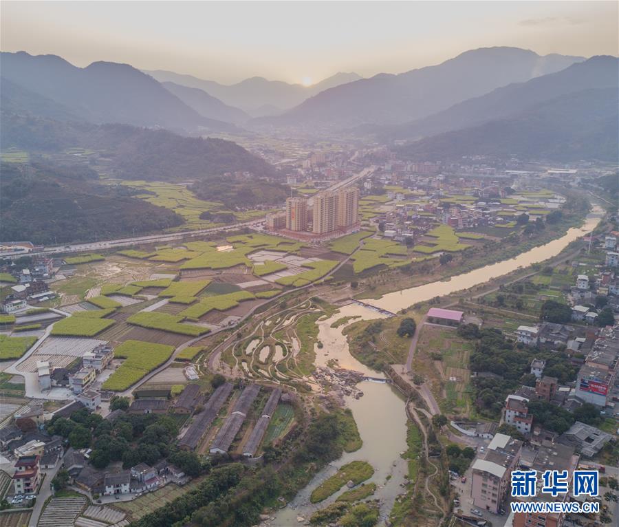 這是福建省永春縣石鼓鎮(zhèn)卿園村附近的萬里生態(tài)水系工程(1月28日無人機拍攝)。 新華社記者 宋為偉 攝