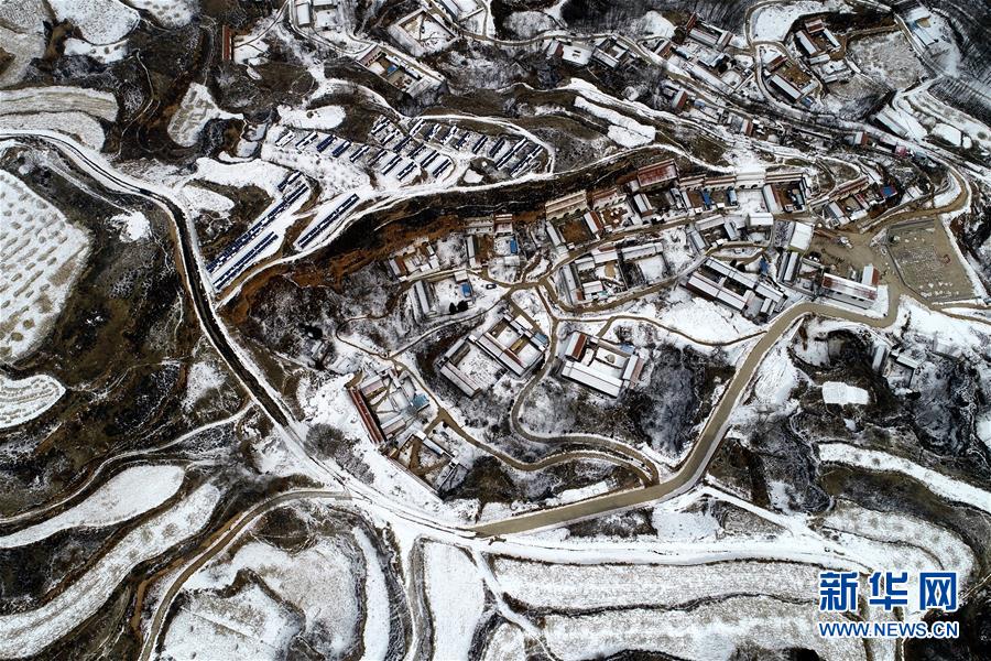 山西省武鄉(xiāng)縣大有鄉(xiāng)王莊溝村雪景(2月15日無(wú)人機(jī)拍攝)。