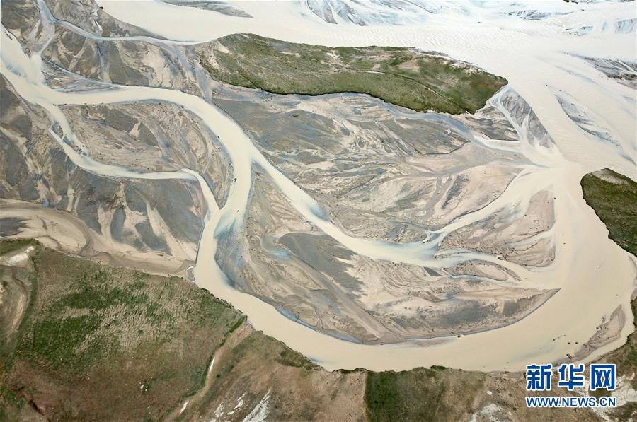 甘肅省酒泉市阿克塞哈薩克族自治縣境內的大哈爾騰河(8月22日無人機拍攝)。新華社記者 馬寧 攝