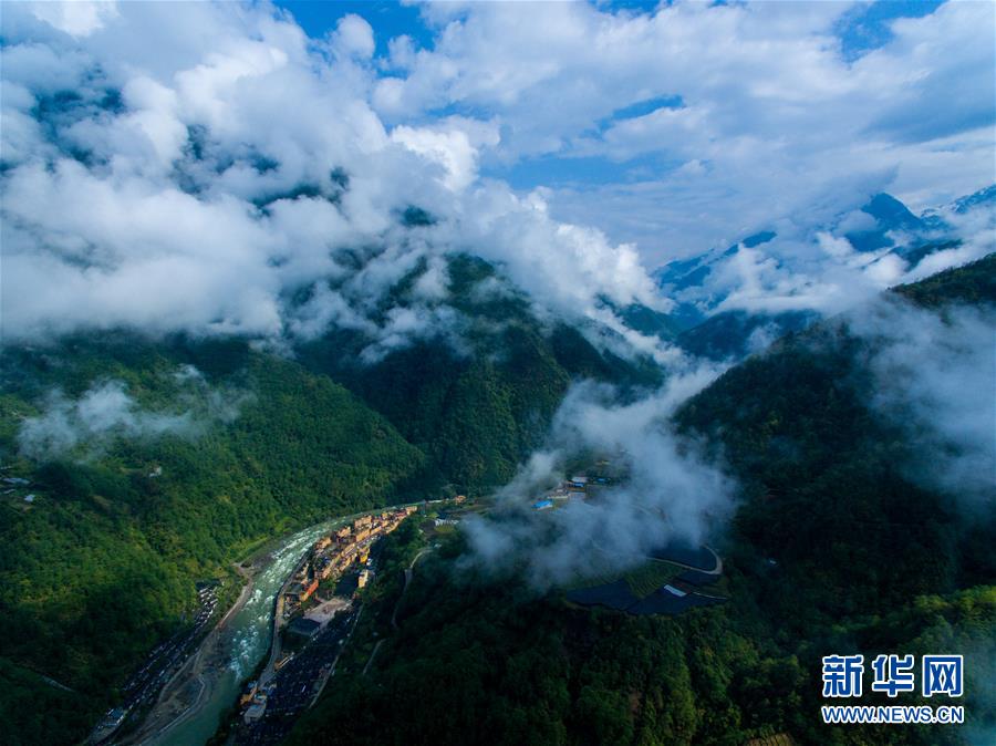 云霧繚繞的獨龍江峽谷,高黎貢山與擔當力卡山夾江而立(4月18日無人機拍攝)。  新華社記者 江文耀 攝