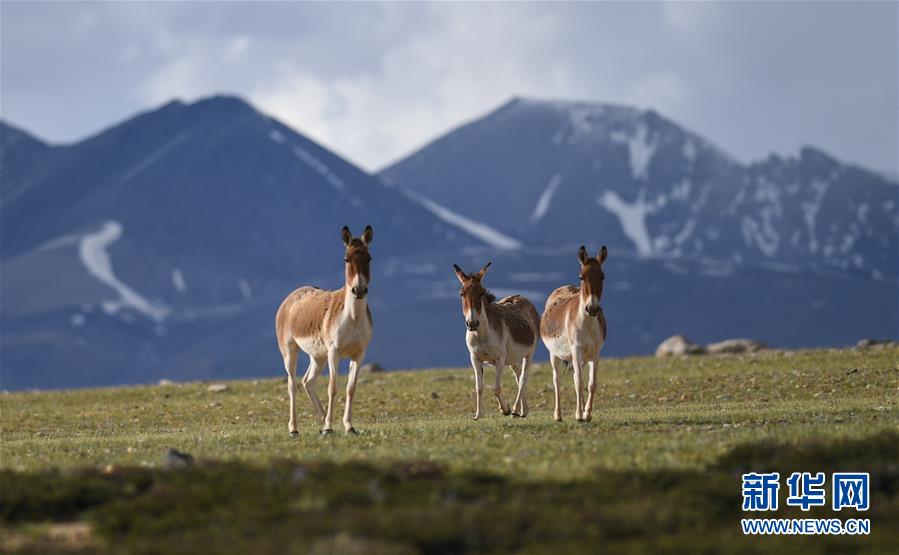 西藏札達(dá)縣香孜鄉(xiāng)熱布加林牧場(chǎng)上的藏野驢(7月29日攝)。新華社記者 晉美多吉 攝
