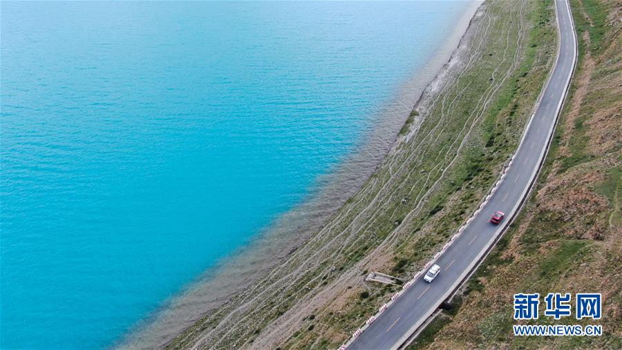 8月31日無人機(jī)拍攝的羊卓雍錯(cuò)及邊上的307省道。新華社記者 晉美多吉 攝