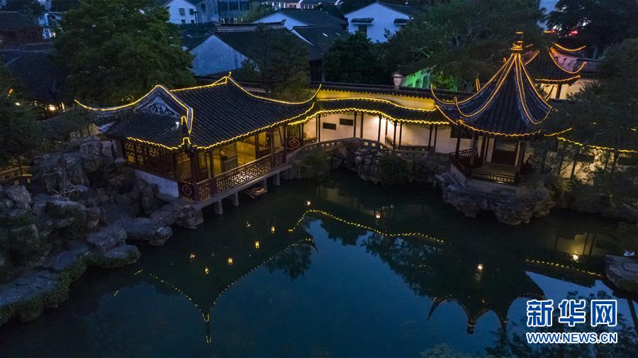 這是5月22日晚拍攝的蘇州網(wǎng)師園(無人機(jī)拍攝)。網(wǎng)師園是唯一在夜間面向公眾開放的蘇州園林。 新華社記者 沈伯韓 攝