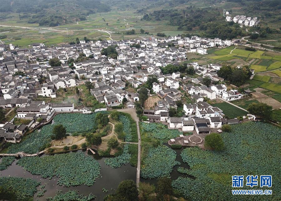 這是無人機拍攝的呈坎村(8月28日攝)。新華社記者劉軍喜攝