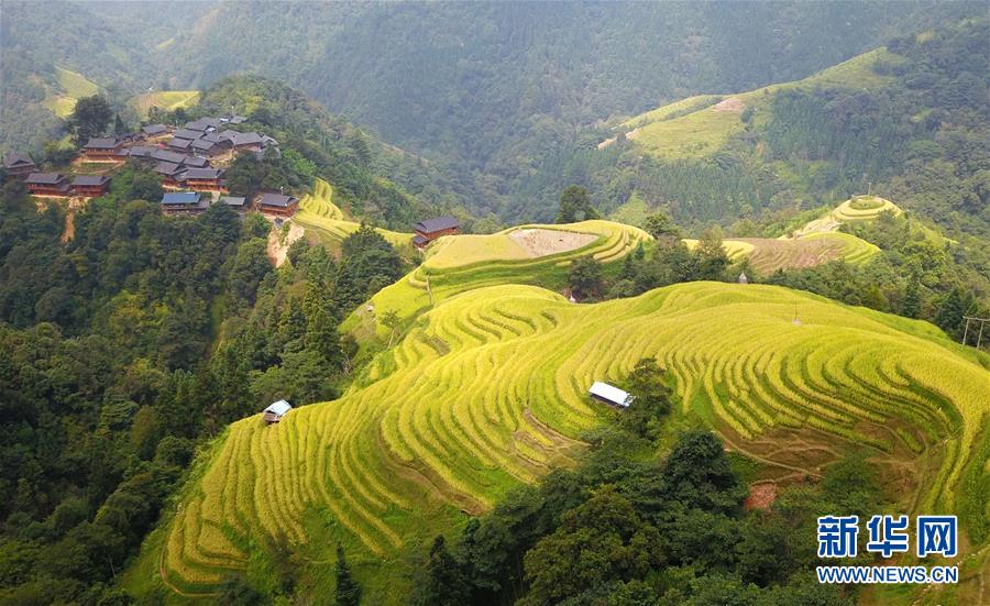 這是9月17日無人機拍攝的貴州省榕江縣計劃鄉(xiāng)計劃村陽開苗寨梯田。新華社記者 楊文斌 攝
