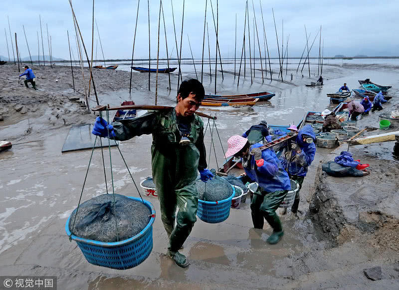 遼寧長海漁民打撈牡蠣 場面壯觀!