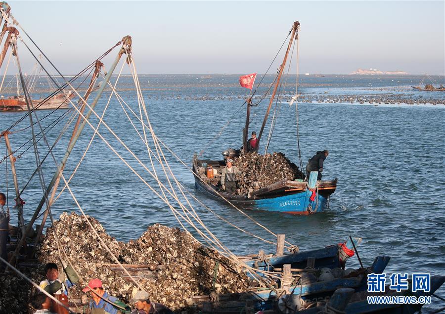 遼寧長海漁民打撈牡蠣 場面壯觀!