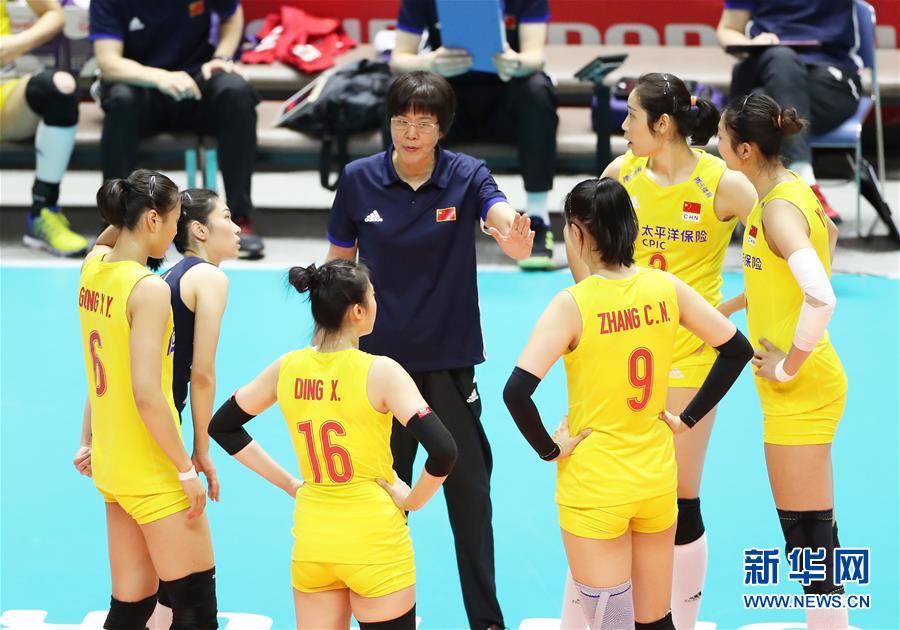 9月23日,中國隊主教練郎平(中)在比賽間隙指導(dǎo)球員。當(dāng)日,在日本札幌舉行的2019年女排世界杯賽第二階段A組循環(huán)賽中,中國隊以3比0戰(zhàn)勝美國隊。新華社記者杜瀟逸攝