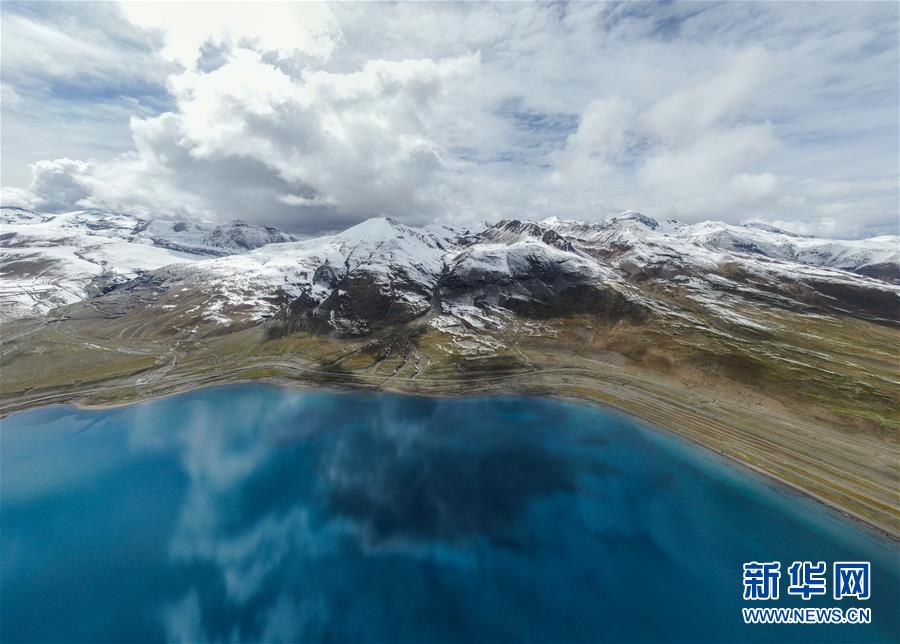 8月31日無人機拍攝的羊卓雍錯風光。新華社記者晉美多吉攝