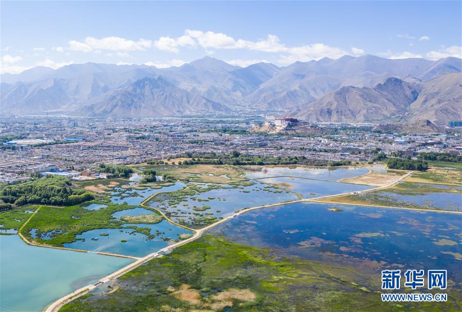 西藏拉魯濕地風光(6月5日無人機拍攝)。新華社記者普布扎西攝