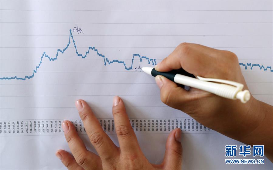 郭旗根據(jù)多年銷售情況,繪制了多寶魚的銷售價(jià)格變化圖(9月5日攝)。 新華社記者 楊青 攝