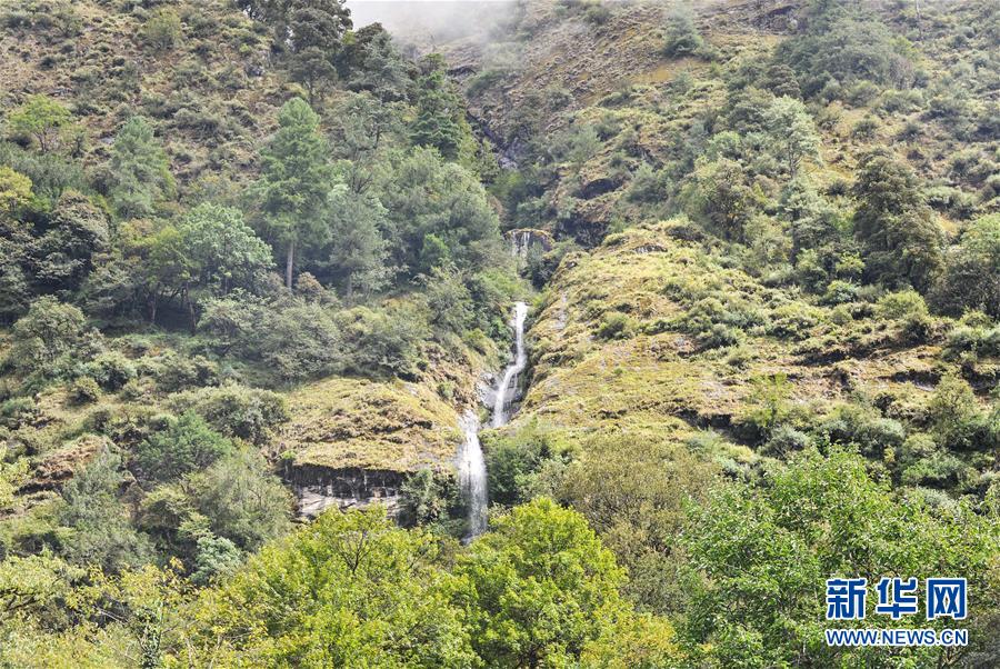 西藏山南市錯(cuò)那縣境內(nèi)波拉山南側(cè)的勒布溝,植被茂密、云霧繚繞,景觀豐富,美不勝收。 新華社記者 晉美多吉 攝