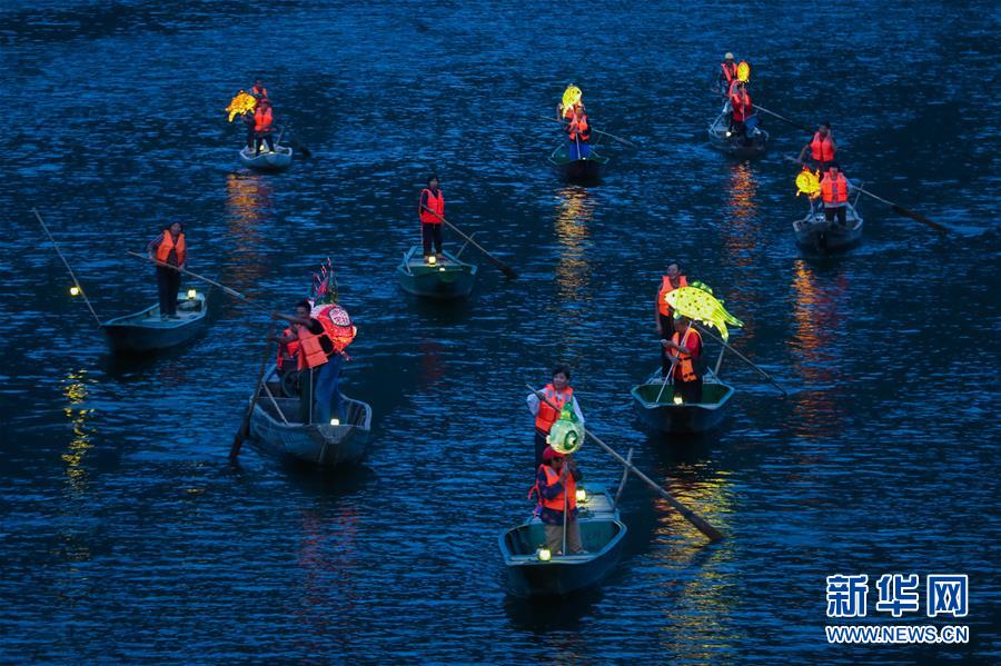 9月25日,在宋村鄉(xiāng)云源港的水面上,漁民劃著漁船,船頭點(diǎn)亮漁燈,構(gòu)成一幅“漁舟唱晚、萬(wàn)家燈火”的美麗圖景。 新華社記者 徐昱 攝