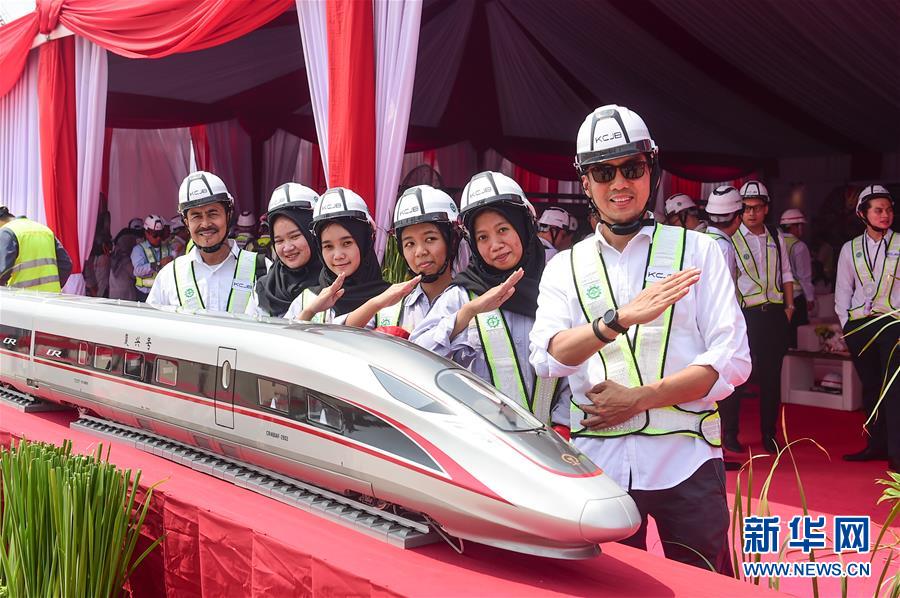 9月30日,在印尼雅萬高鐵首榀箱梁架設(shè)現(xiàn)場(chǎng),幾名印尼嘉賓與“復(fù)興號(hào)”動(dòng)車模型合影。 印度尼西亞雅萬高鐵全線首榀箱梁9月30日架設(shè)成功,高鐵建設(shè)繼續(xù)穩(wěn)步推進(jìn)。雅萬高鐵全長142公里,最高設(shè)計(jì)時(shí)速350公里,2018年6月全面開工,總工期為36個(gè)月,今年是施工建設(shè)全面提速的關(guān)鍵年。建成通車后,雅加達(dá)至萬隆的時(shí)間將由現(xiàn)在的3個(gè)多小時(shí)縮短至40分鐘。 新華社記者 杜宇 攝