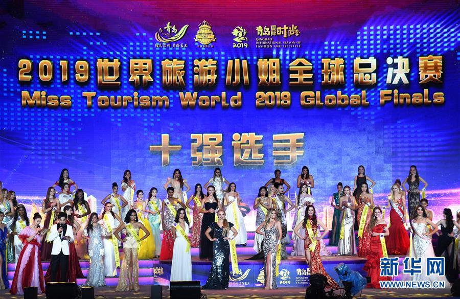 10月6日,選手在頒獎儀式上。 10月6日晚,2019世界旅游小姐全球總決賽頒獎盛典在山東青島舉行。來自67個(gè)國家和地區(qū)的佳麗在民族服裝、泳裝、晚裝以及才藝展示環(huán)節(jié)各展風(fēng)采,最終來自墨西哥和加拿大的兩名選手分獲冠亞軍,中國選手譚若依獲得季軍。 新華社記者 李紫恒 攝