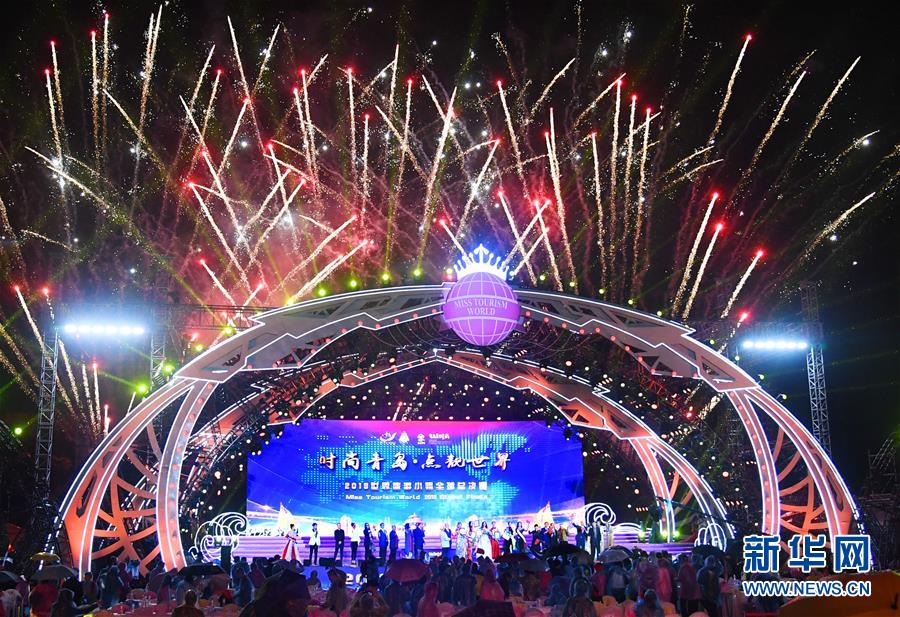 10月6日,選手在頒獎儀式上。 10月6日晚,2019世界旅游小姐全球總決賽頒獎盛典在山東青島舉行。來自67個國家和地區(qū)的佳麗在民族服裝、泳裝、晚裝以及才藝展示環(huán)節(jié)各展風(fēng)采,最終來自墨西哥和加拿大的兩名選手分獲冠亞軍,中國選手譚若依獲得季軍。 新華社記者 李紫恒 攝