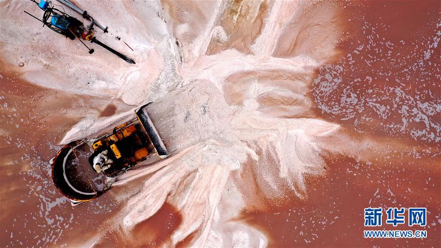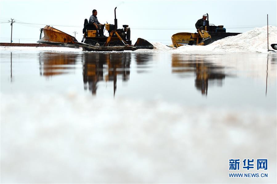 日前,山東省無棣縣境內的魯北鹽場進入海鹽收獲季節(jié),星羅棋布的鹽池將大地裝扮得繽紛如畫。無棣縣位于山東省北部渤海之濱,全縣擁有鹽田365萬公畝,是我國重要的海鹽生產基地。據(jù)無棣縣工信局統(tǒng)計,今年1-9月份,當?shù)卦}產量111.7萬噸。