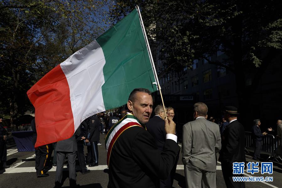 10月14日,在美國紐約曼哈頓第五大道,一名男子手舉意大利國旗參加哥倫布日游行。當(dāng)天,紐約舉行哥倫布日游行,紀(jì)念意大利航海家克里斯托弗·哥倫布首次到達(dá)美洲大陸。哥倫布日游行也是美國最大的展示意大利文化傳統(tǒng)的慶?;顒?。新華社記者李木子攝