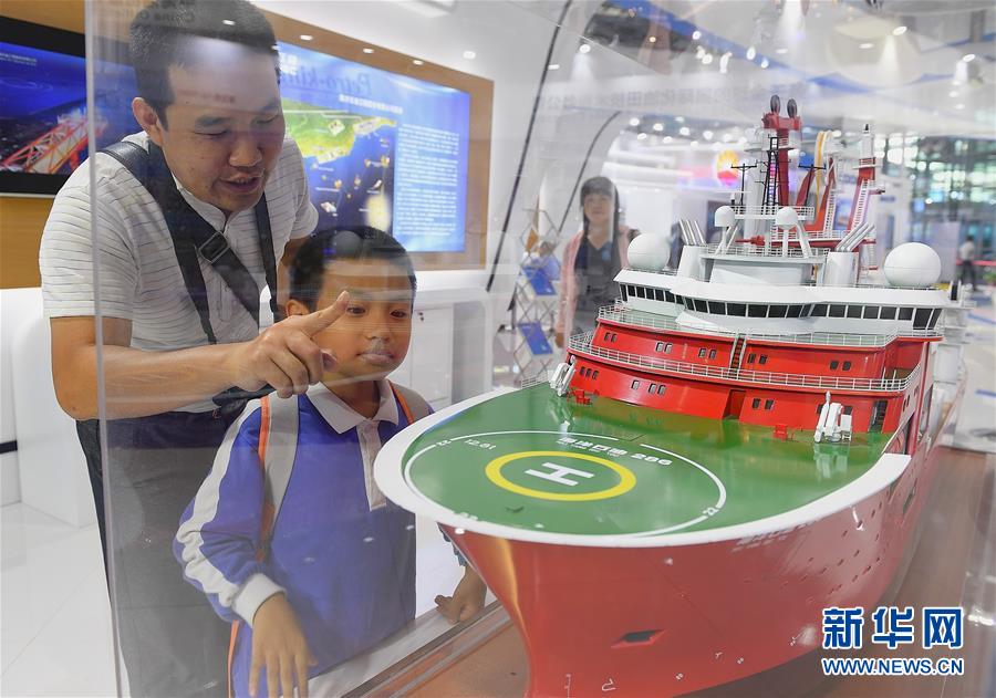 10月15日,觀眾在招商局展臺了解首艘國產(chǎn)極地探險郵輪“格雷格·莫蒂默”號。 當日,2019中國海洋經(jīng)濟博覽會在深圳開幕,大批海洋“大國重器”及高新技術研發(fā)成果亮相。 中國海洋經(jīng)濟博覽會被譽為“中國海洋第一展”。2019中國海洋經(jīng)濟博覽會以“藍色機遇、共創(chuàng)未來”為主題,吸引450余家企業(yè)和機構(gòu)參展,將重點圍繞現(xiàn)代港口建設、海洋高新技術與裝備制造、海洋可再生能源利用、海水淡化與綜合利用等熱點領域,推出新技術成果,推進中外企業(yè)洽談合作。 新華社記者毛思倩攝