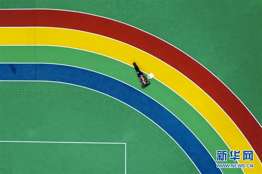 午休時(shí)間,王太樊在學(xué)校的操場(chǎng)上練習(xí)小號(hào)、背誦樂(lè)譜(10月10日無(wú)人機(jī)拍攝)。 新華社記者 劉潺 攝
