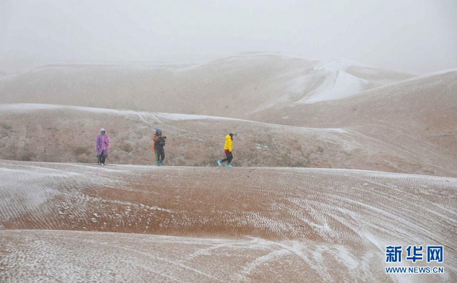 10月15日,游客在寧夏中衛(wèi)市沙坡頭景區(qū)欣賞沙漠雪景。深秋時節(jié),位于騰格里沙漠邊緣的寧夏中衛(wèi)市沙坡頭景區(qū)迎來一場降雪。漫漫黃沙被覆蓋在皚皚白雪之下,呈現(xiàn)出一種別樣的美。新華網(wǎng)杜文杰攝