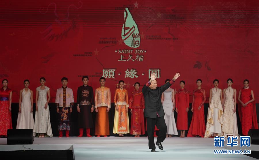 10月16日,“愿·緣·圓”上久楷婚慶主題秀在江蘇省蘇州市吳江區(qū)盛澤鎮(zhèn)舉行。主題秀上展示大量帶有龍鳳、牡丹、海棠、彩蝶等中國傳統(tǒng)文化元素的宋錦中式婚慶禮服。 新華社記者 季春鵬 攝