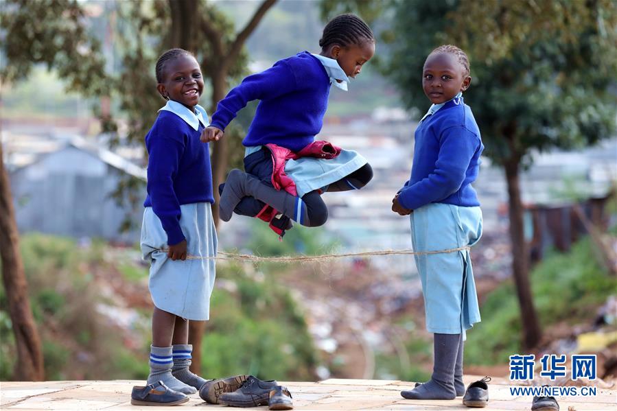 10月16日,在肯尼亞內(nèi)羅畢基貝拉貧民窟,孩子們?cè)诜艑W(xué)后玩耍。新華社記者王騰攝