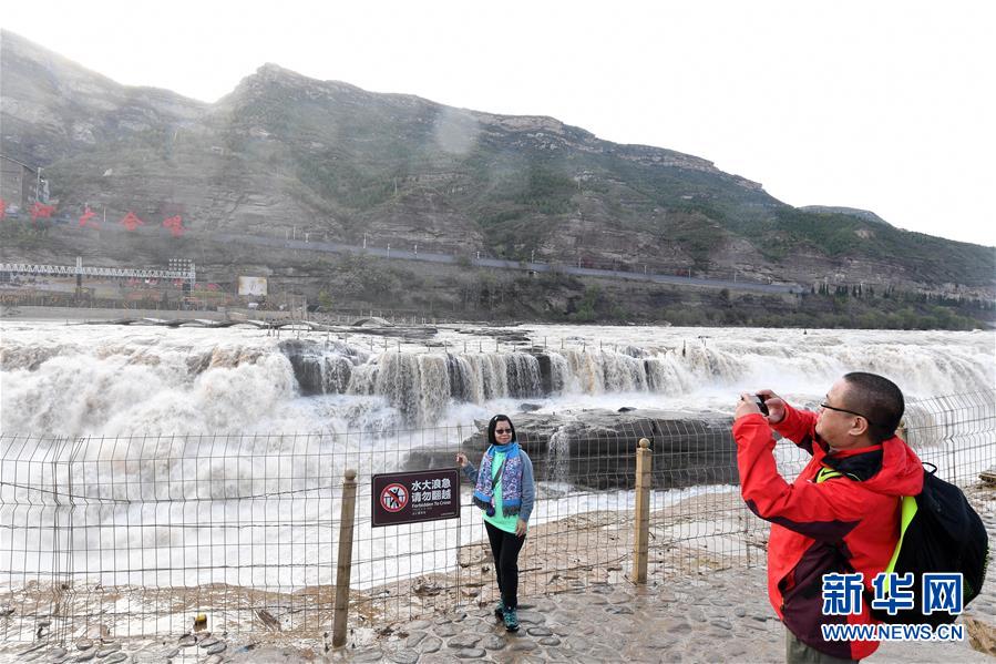 壺口瀑布水量增大 引眾多游客觀賞