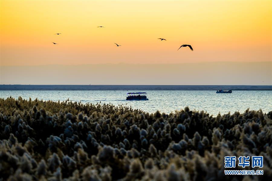 這是10月17日拍攝的日出時分的居延海風光。 新華社記者 彭源 攝