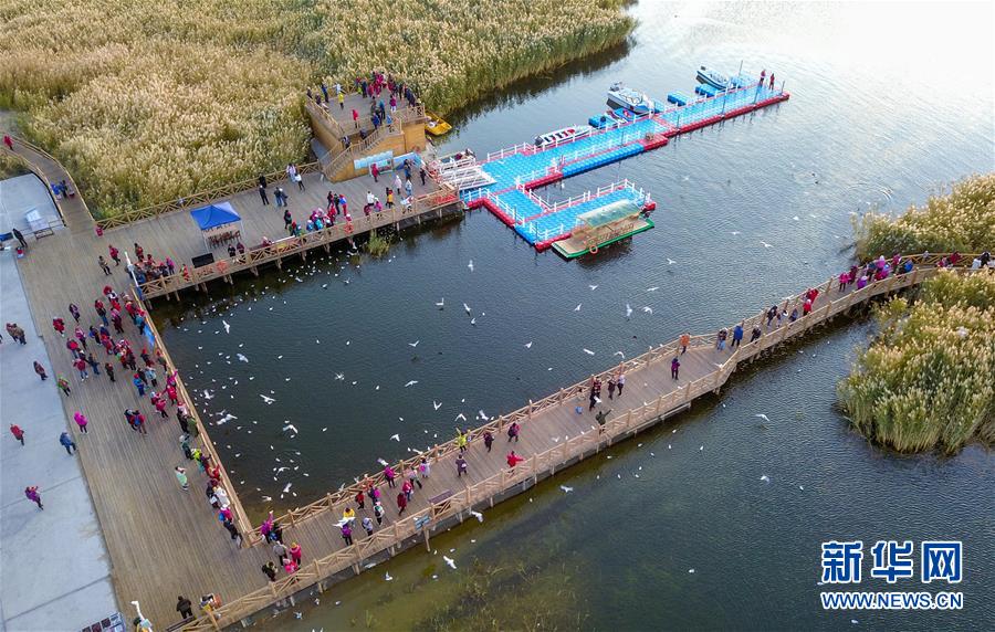 這是10月17日無(wú)人機(jī)拍攝的居延海碼頭。 新華社記者 彭源 攝
