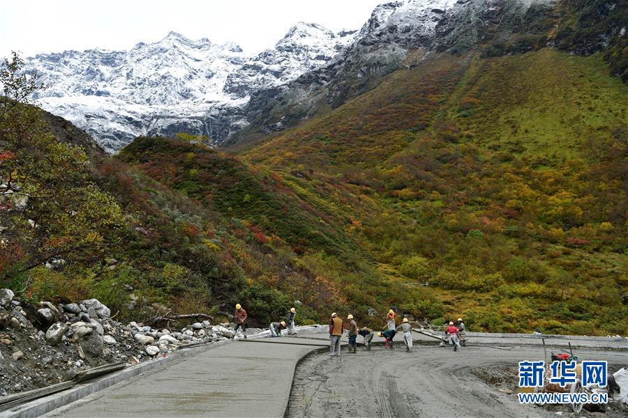 工人們?cè)谂赡r(nóng)村公路施工現(xiàn)場(chǎng)作業(yè)(10月24日攝)。新華社記者李鑫攝
