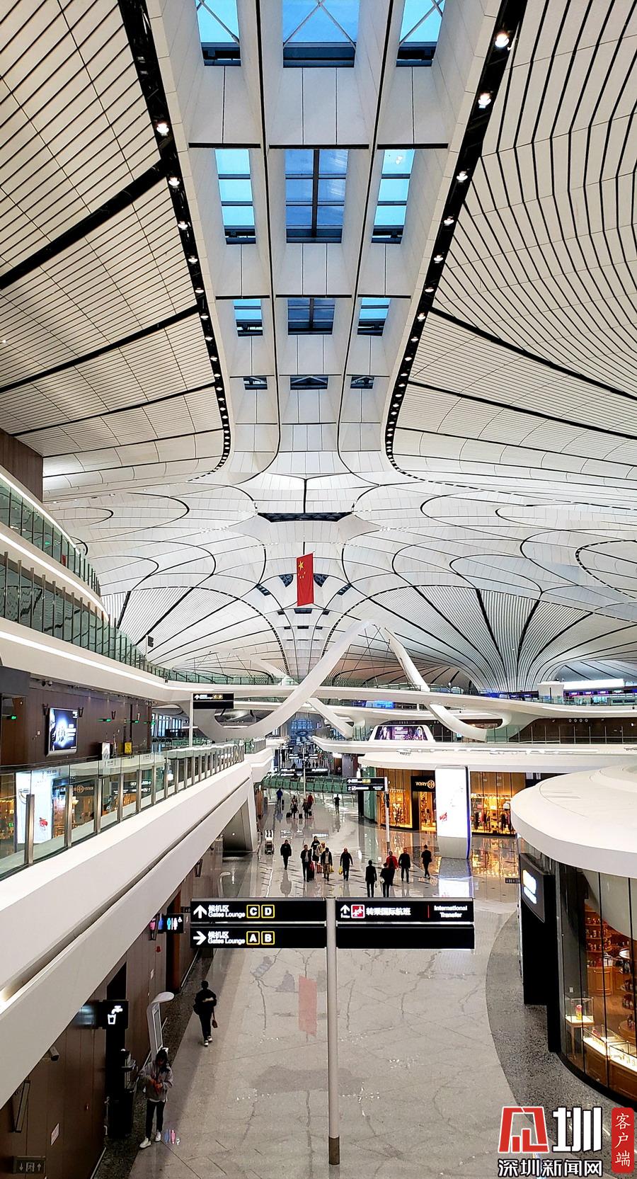 北京大興機(jī)場(chǎng)橫跨兩市,距離天安門46公里,首都機(jī)場(chǎng)67公里,北京城市副中心54公里。見圳客戶端、深圳新聞網(wǎng)記者劉東博攝