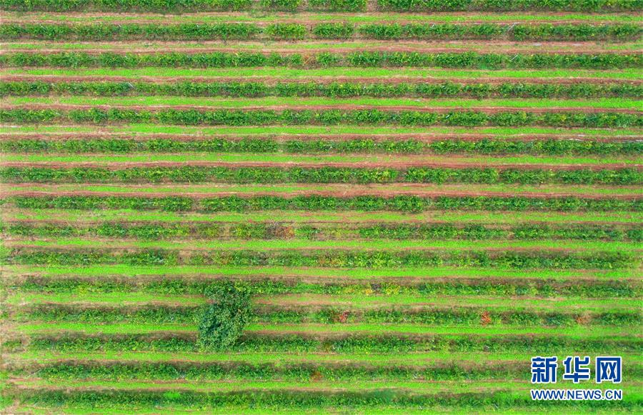 河南省洛寧縣馬店鎮(zhèn)關(guān)廟村金珠沙梨種植基地(10月9日無人機(jī)拍攝)。新華社記者李嘉南攝